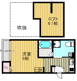 | 間取り詳細 | 洋室5帖 ロフト6.1帖 K2.6帖 |