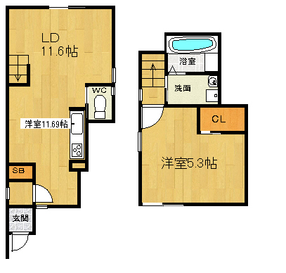 | 間取り詳細 | リビング11.6帖 洋室5.3帖 |
