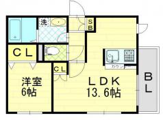 LDK 13.6帖 洋室 6帖
