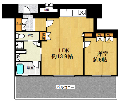 | 間取り詳細 | LDK 13.9帖 洋室 6帖 |
