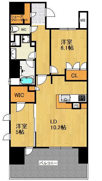 | 間取り詳細 | LD 10.2帖 洋室 5帖 洋室 6.1帖 |