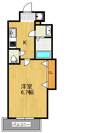 | 間取り詳細 | 洋室 6.7帖 K 2帖 |