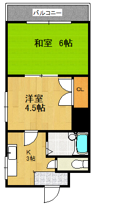 | 間取り詳細 | キッチン 3帖 洋室 4.5帖 和室 6帖 |